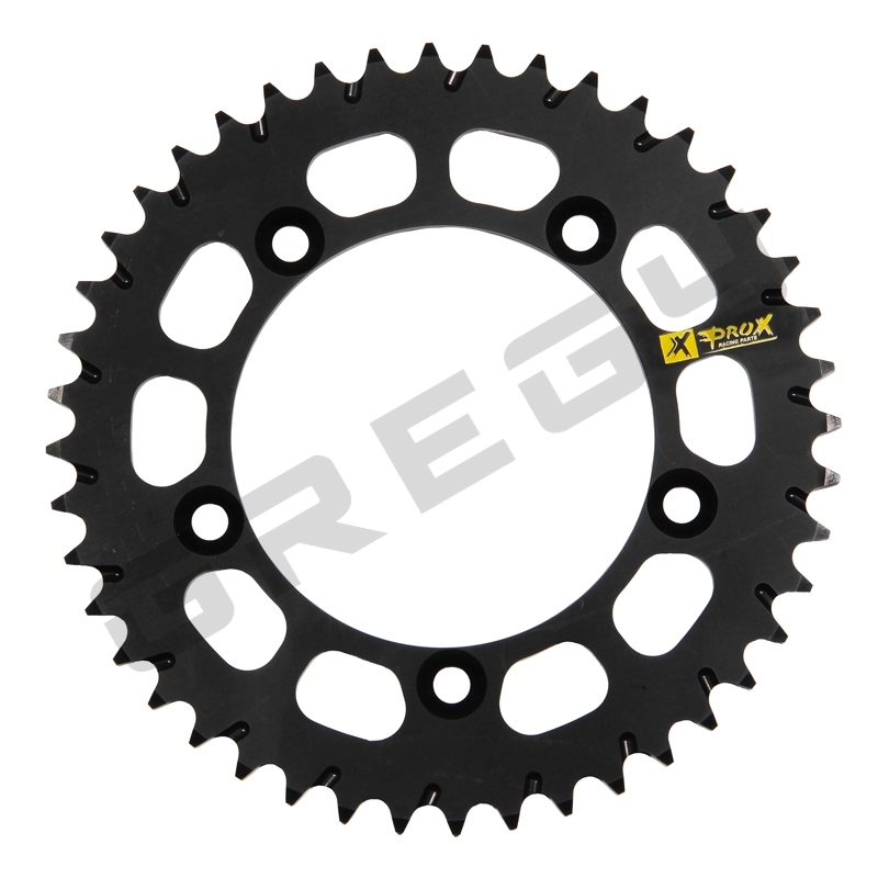 Hliníková rozeta Prox se speciálním samočistícím zafrézováním, které zvyšuje její životnost a zároveň výrazně zvyšuje životnost řetězu.