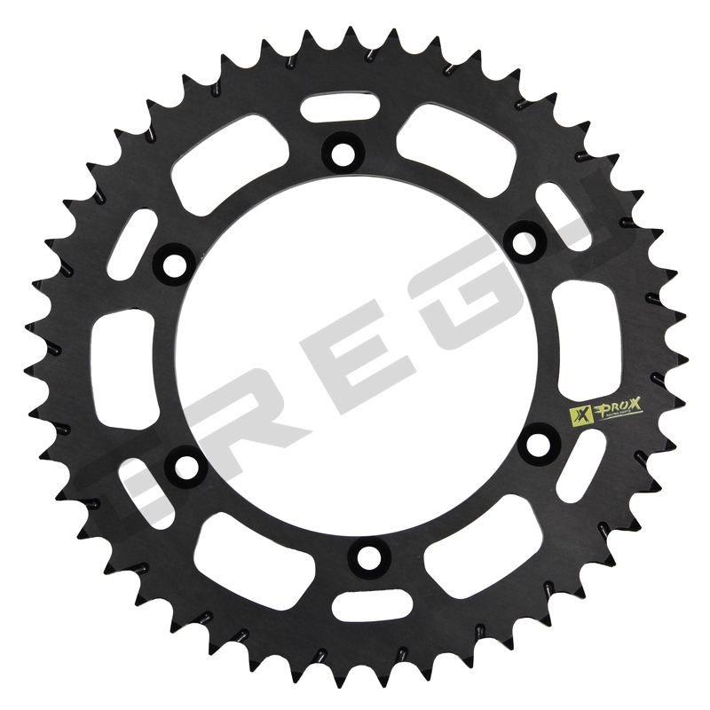 Hliníková rozeta Prox se speciálním samočistícím zafrézováním, které zvyšuje její životnost a zároveň výrazně zvyšuje životnost řetězu.