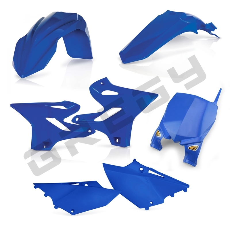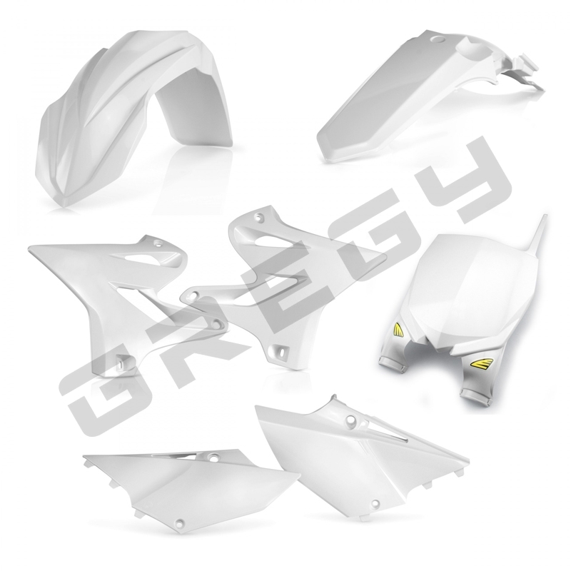 Sada obsahuje přední blatník, zadní blatník, kryt nádrže, boční číselné tabulky a přední číselnou tabulku Cycra.