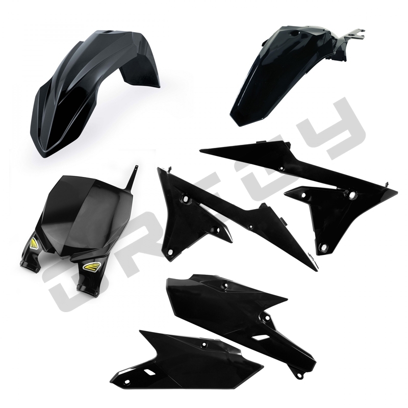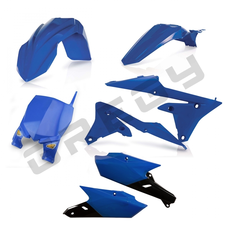 Sada obsahuje přední blatník, zadní blatník, kryt nádrže, boční číselné tabulky a přední číselnou tabulku Cycra.