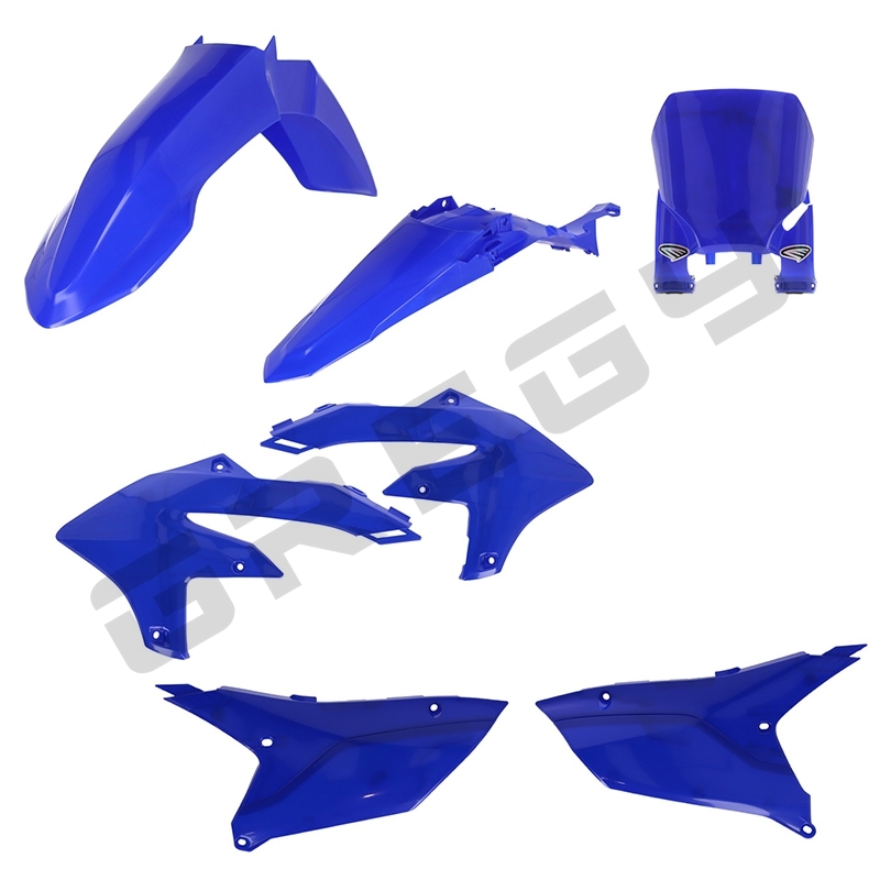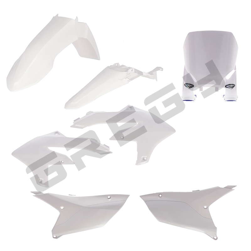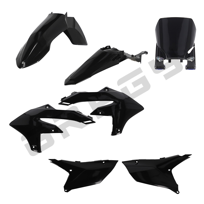Sada obsahuje přední blatník, zadní blatník, kryt nádrže, boční číselné tabulky a přední číselnou tabulku Cycra.